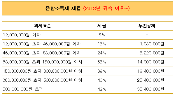 ③ 종합소득 과세표준 x 과세표준에 따른 세율(아래 표 참조) = 산출세액
