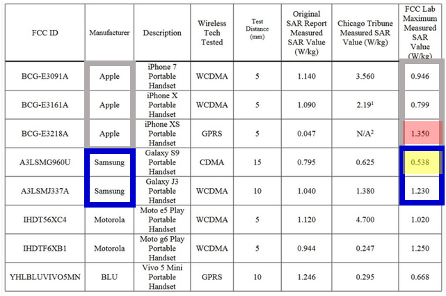 시카고 트리뷴은 2019년 8월 삼성전자와 애플, 비보, 모토로라의 스마트폰 11가지 기종에 대해 전자파 흡수율을 측정하였다고 하는데요. 모든 모델에서 기준치를 초과하였다고 발표했습니다.
