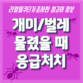 여러분, 개미에 물려본 적 있으신가요? 저는 매일 모기에게 헌혈 당하고 있어서 모기한테 물려본 느낌은 압니다만, 개미한테는 아직 물려본적이 없습니다. 하지만 개미는 어디서나(?) 살고 있으므로 개미를 만나 혹시 물리게 된다면 응급처치법 정도는 알아둬야 할 것 같더군요. 특히나 야외에서 활동할 때는 모든 벌레에 대한 대처법 정도는 알고 있어야 할 것 같습니다. 오늘은 개미 물림, 벌레 물렸을 때 응급처리하는 방법에 대해 알아보겠습니다.