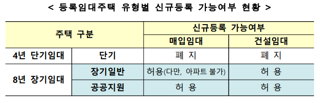 앞으로 신규 임대등록은 장기일반 및 공공지원형의 장기임대만 가능합니다.
