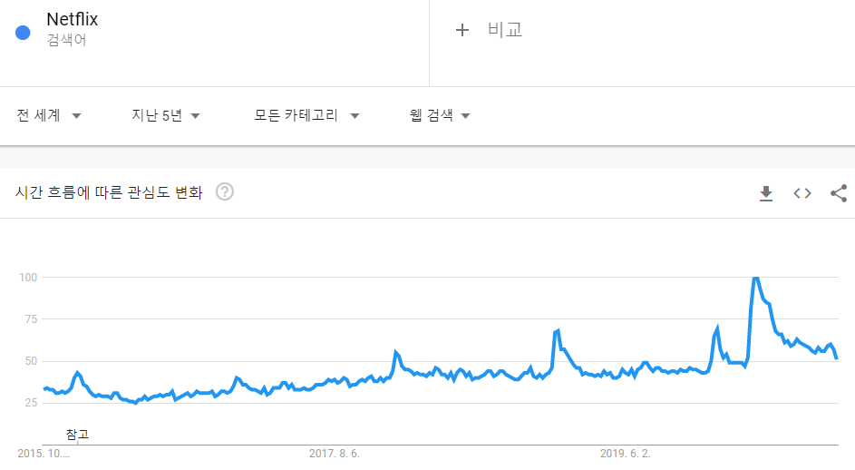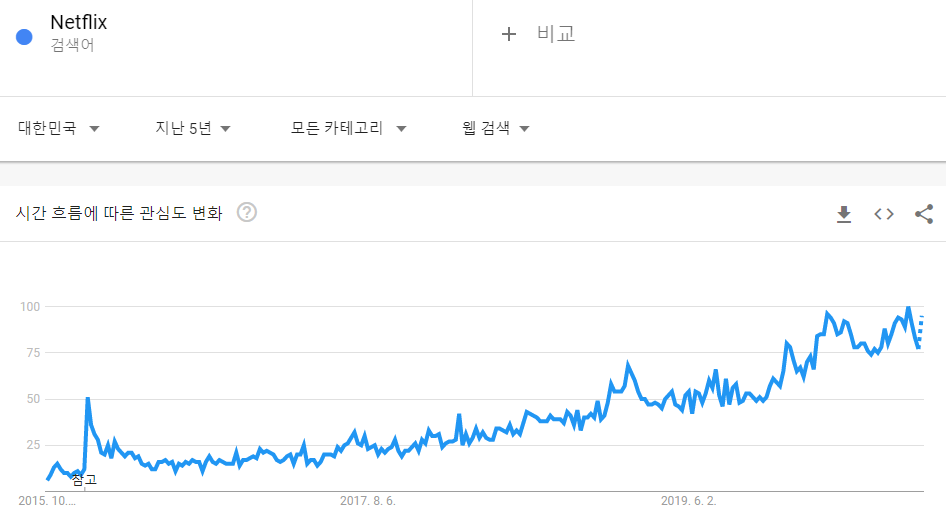 국내 및 전세계에서 사용자들이 넷플릭스를 구글링하는 검색 수가 상승하는 것처럼,