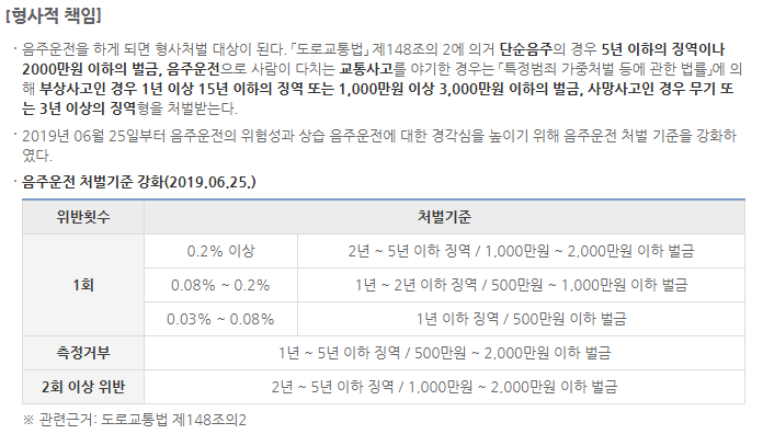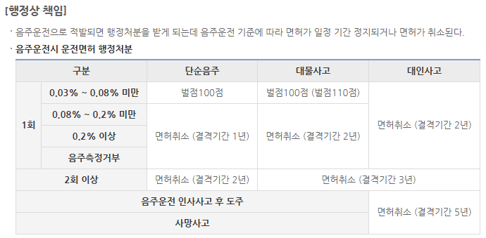 음주운전 처벌 기준: 혈중 알코올 농도 0.03% 이상