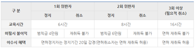 - 교육 이수시 혜택: 음주운전 1회자와 동일