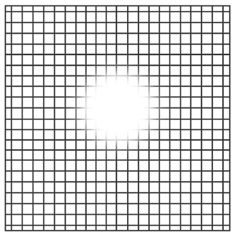 3. 한쪽 눈을 가리고 암슬러 격자의 중심 점을 바라봅니다.