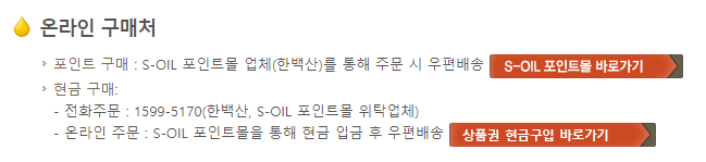 전국 S오일 지사나 전화를 통해 구매할 수 있으며, 인터넷 포인트몰에서도 구매가 가능합니다.