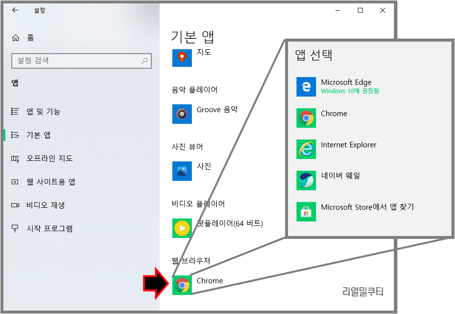 크롬을 기본 브라우저로 설정해주세요~~. 끝!