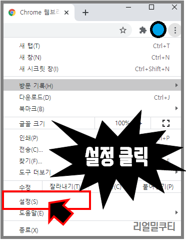 아마 크롬 브라우저를 다운받으신지 얼마되지 않으셨다면 굳이 하지 않더라도 설정이 되어 있을 거예요.