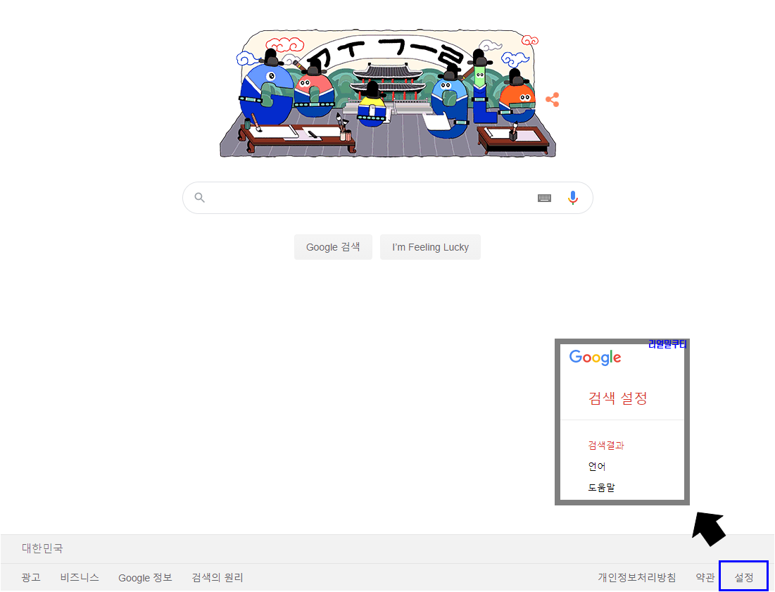 방법은 아까와 동일하게 구글 사이트 메인화면 설정에서 왼쪽의 언어를 눌러주시면 됩니다.