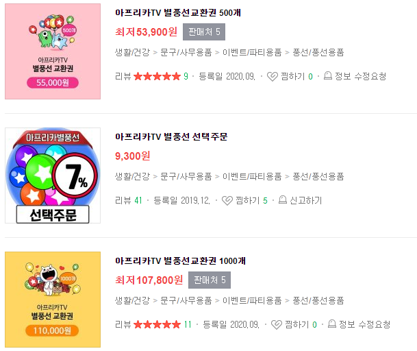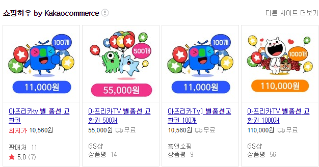 ○ 아프리카 TV 별풍선 교환권 구매하는 방법