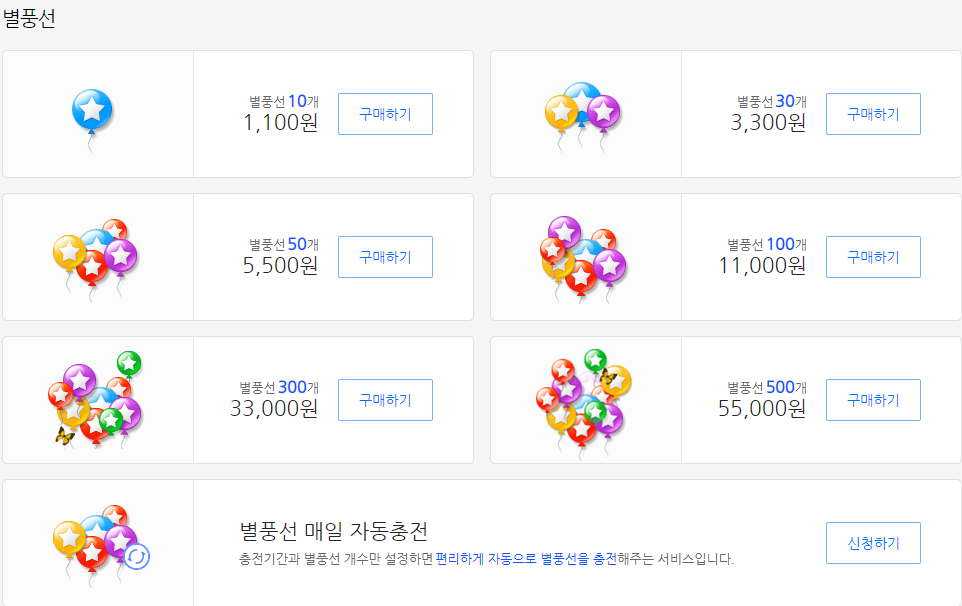 실제 현금을 주고 별풍선을 구매하여도 영구적으로 사용할 수 있는 것이 아닙니다. 병풍선은 구매일로부터 5년 동안만 유효합니다.