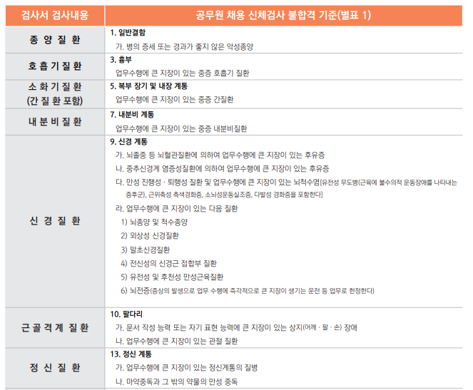 ◇ 공무원 채용 신체검사 적용대상