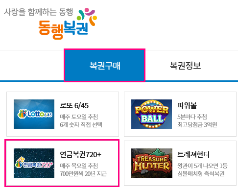 아래 동행복권 홈페이지에서 구매하실 수 있습니다.