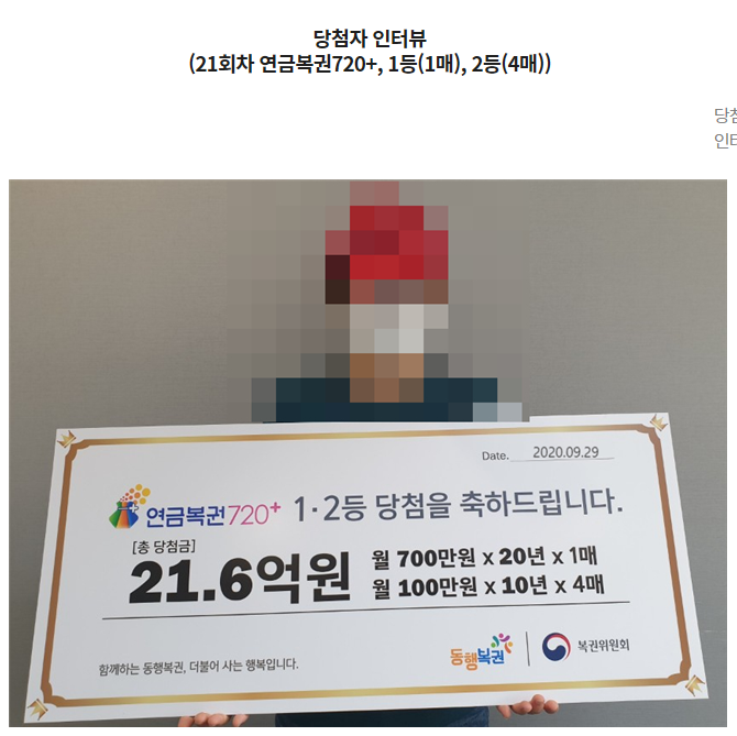 ◇ 세금을 제한 연금복권 당첨금 실수령금액은?