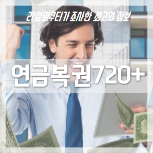 일확천금의 꿈은 누구나 한번쯤 꾸는 꿈입니다. 일확천금은 아니지만~ 그에 버금가는 연금성 복권이 있습니다. 월 700만원 씩 20년을 받는 복권은 어떠십니까? 분할 지급 방식의 연금복권720+가 바로 그것입니다! 월 700만원씩 20년이면 얼마일까요? 아래에서 연금복권 추첨시간, 구매방법, 온라인 구매방법까지 함께 알아보도록 하겠습니다.