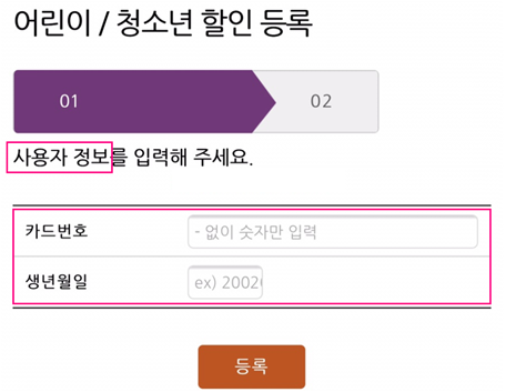 카드를 구매하고 어린이·청소년 등록을 요청하면 됩니다.
