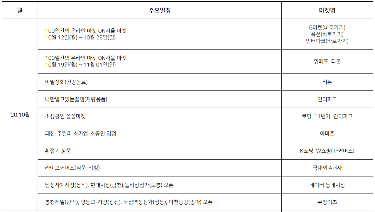 100일간의 서울 온라인 마켓 주요 일정입니다.