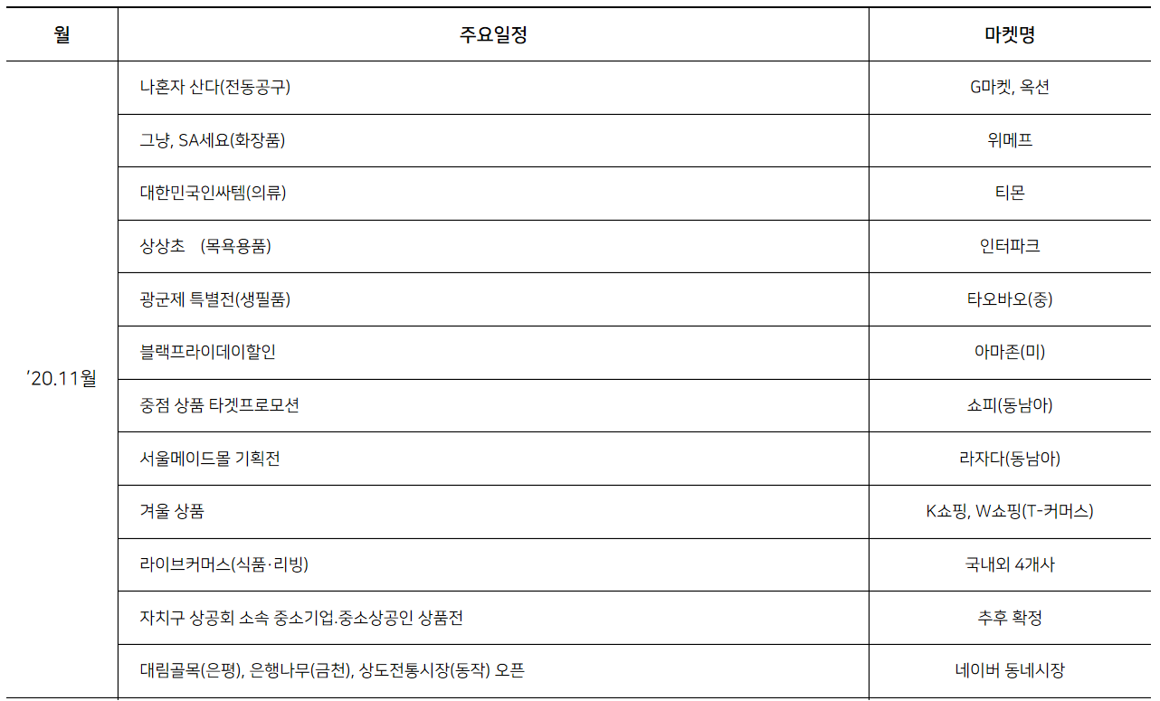 블랙프라이데이 등의 시즌성 기획전과 홈쇼핑 등의 다양한 플랫폼과 행사를 통해 운영된다고 하니 서울마켓에서 진행하는 온라인 장보기를 구경해보고 필요한 것이 있다면 구매해 보는 것도 좋을 것 같습니다.