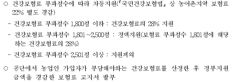 농업인 건강보험료 지원 내용