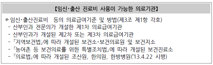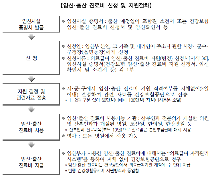 · 임신 또는 출산 진료비 신청 전에 직접 부담한 진료비는 적용되지 않습니다. 또한 지원 기간 내에 사용해야 합니다. (자동 소멸)