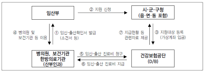 3. 시장, 군수, 구청장은 행복e음을 통하여 지원대상자, 지원금액, 출산예정일 및 지원기간 등을 건강보험공단으로 보냅니다.