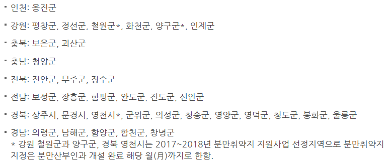임신 또는 출산 진료비 “추가금 지급 대상” 지역은 아래 그림을 참고해주세요.