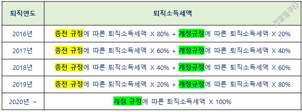 퇴직소득세 세법이 개정되기 전과 후가 달라서