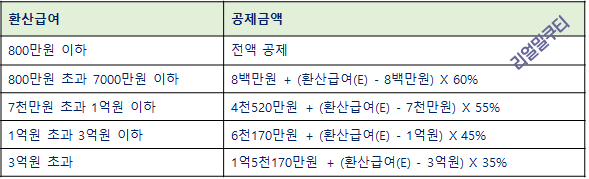 ○ 퇴직소득공제: 퇴직소득이 있으면 퇴직금에서 순서대로 일정 금액을 제함
