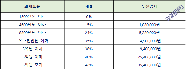 [표 2] 과세표준에 따른 세율 및 누진공제액