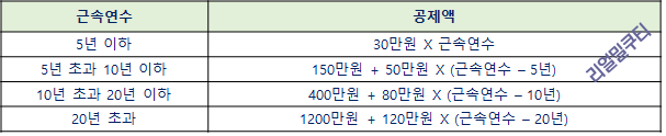 [표 1] 근속연수에 따른 퇴직소득공제액