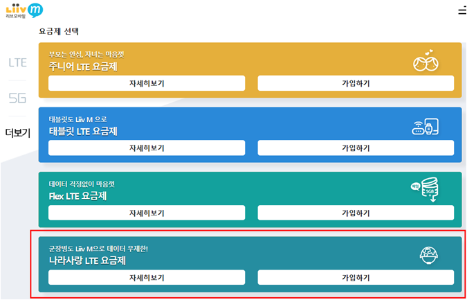 아래에서 소개드릴 나라사랑 LTE 요금제는 위의 리브엠에서 출시한 요금제입니다.