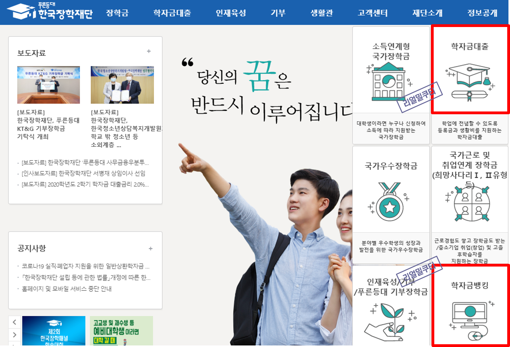 한국장학재단(www.kosaf.go.kr), 한국장학재단 콜센터 ☎1599-2000