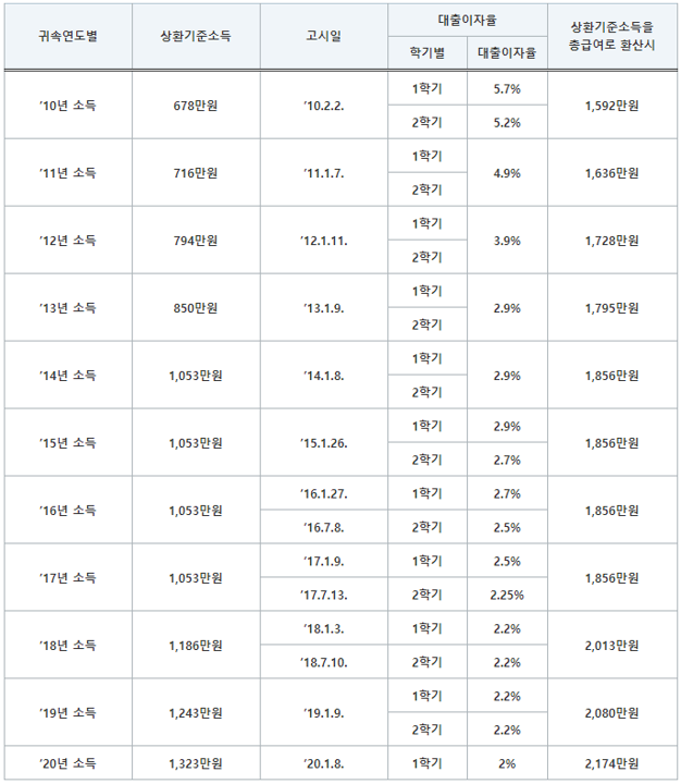 참고로 대학원생은 일반 상환 학자금대출만 지원받을 수 있었으나, 2020년 6월 17일 취업후 상환 학자금대출 대상에 대학원생을 포함하는 병역법 개정안과 취업후 학자금 상환 특별법 개정안 발의에 따라 대학원생도 취업 후 학자금 상환 제도를 이용할 수 있습니다.