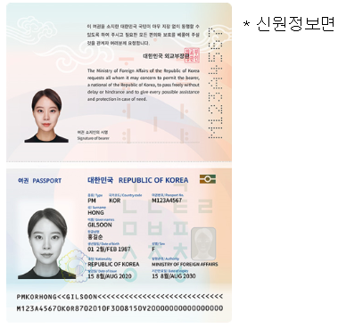 ·또한 여권의 보안을 강화하기 위하여 신원정보페이지를 종이 재질에서 -> 내구성, 투명성, 내열성, 내충격성 등의 특성을 가진 폴리카보네이트(PC) 재질로 변경하였으며, 레이저 인쇄방법을 사용하였습니다.