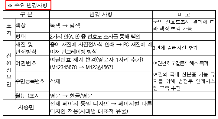 ·현행 일반여권의 표지 녹색 -> 차세대 전자여권 표지 남색으로 변경