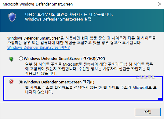 윈도우 디펜더 스마트스크린 해제 끄기 켜는 방법 본문