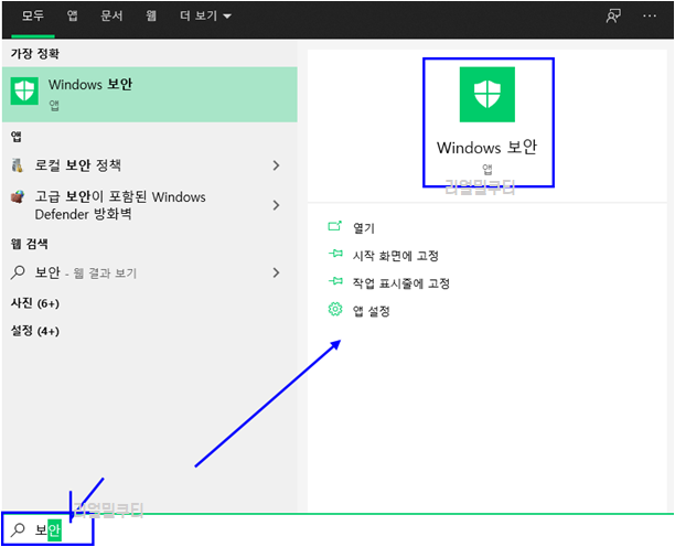 그러면 windows 보안이라고 설정 앱이 뜰 것입니다.