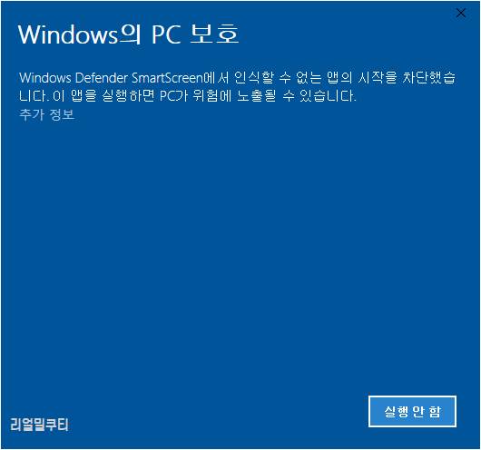 프로그램 설치할 때 윈도우 디펜더가 작동하는 경우 있으실 겁니다. 악성코드를 방지하기 위해 일반적으로 윈도우 10에서 방화벽을 켜두는 기능 입니다만, 가끔은 이 보안을 꺼야할 때도 있습니다. 아래에서 윈도우 디펜더 스마트스크린을 해제하는 방법에 대해 알아보겠습니다.