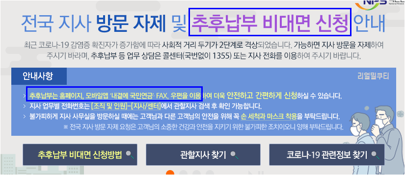 그 외에는 추납보험료 등의 문의는 전화로 직원과 상담을 하거나, 지사로 방문하여 상담이 필요합니다.
