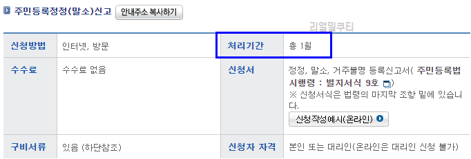 세대원에 대한 거주불명 등록신고는 사실에 관한 조사기간으로 약 1개월 정도의 민원처리 기간이 소요된다고 합니다.