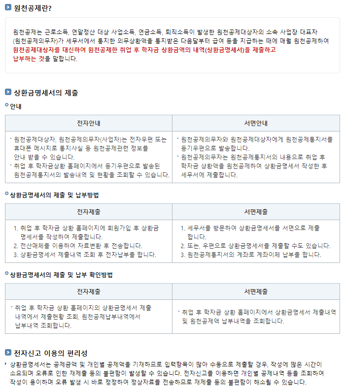 - 연체 시: 원천공제액을 미납할 경우 연체금(의무상환액의 3%) 및 가산금을 부과합니다.