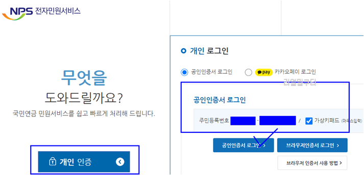 1. 링크를 통해 국민연금공단에 접속해주세요.