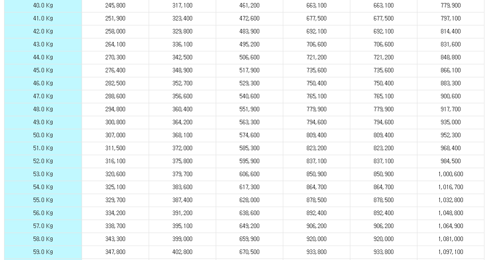 ■ EMS 프리미엄 가격 : 비서류 무게 40kg ~ 59.5kg
