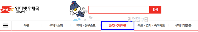 메인화면의 상단 메뉴에서 [EMS, 국제우편]에 마우스를 대시면,