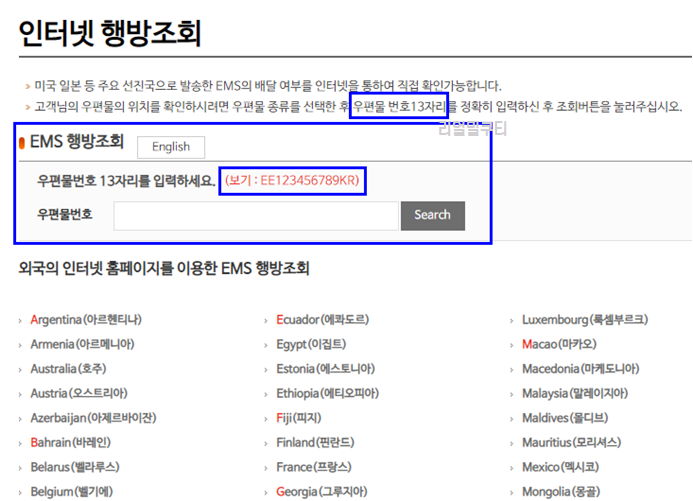 또한 아래 화면에 외국 우체국 홈페이지를 통해서도 확인이 가능합니다.