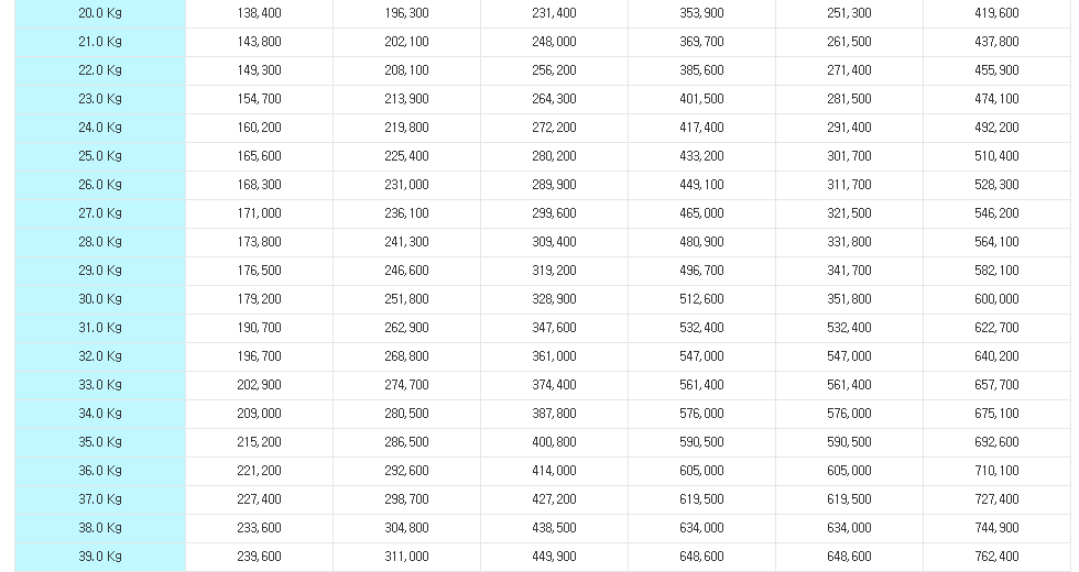 ■ EMS 프리미엄 가격 : 비서류 무게 20kg ~ 39.5kg