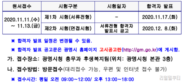 ▶ 광명시 공무직 원서접수 및 시험일정