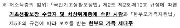 - 저소득층 (증빙자료 첨부)