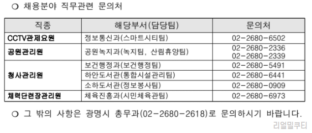 ▶ 광명시 공무직 응시 관련 채용 문의처