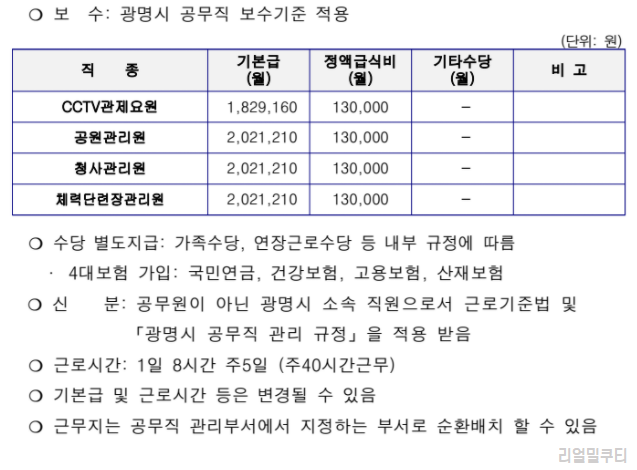 ▶ 광명시 공무직 제출서류 및 보수 등 근무조건