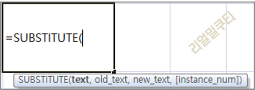 SUBSTITUTE 함수란? 특정 문자를 찾아 다른 문자로 변환해 주는 함수입니다.